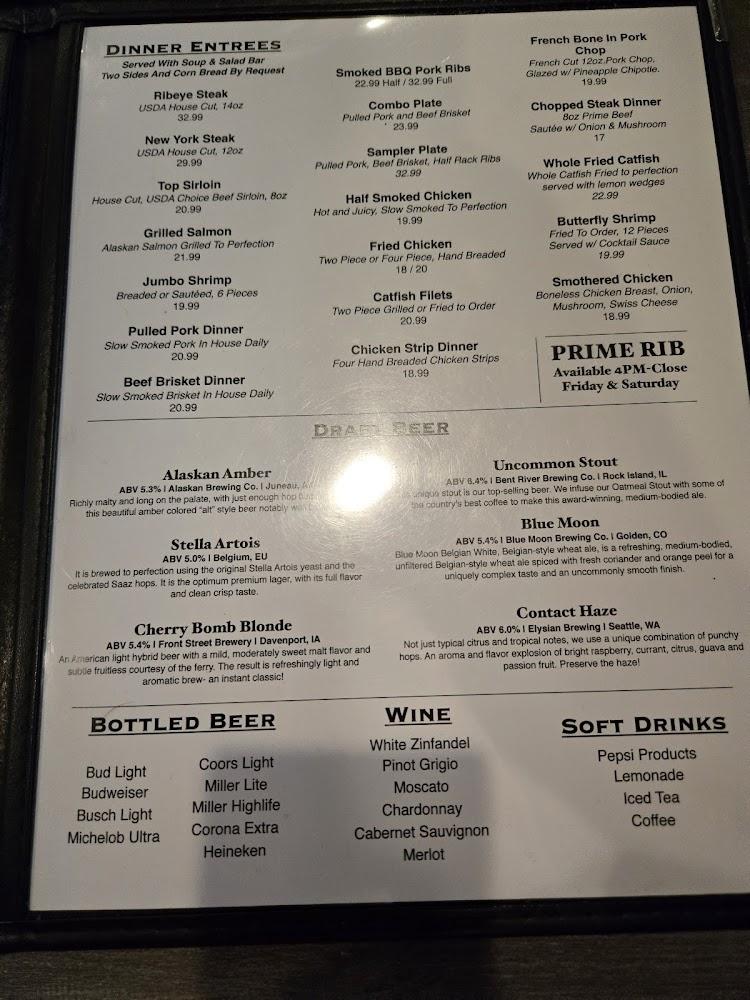The menu at Aircraft Grill features a delightful mix of traditional American cuisine and BBQ specialties. Diners can enjoy everything from burgers and sandwiches to smoked meats. A standout includes the pulled pork dinner and full rack ribs, which delight with their tender texture and rich flavors.